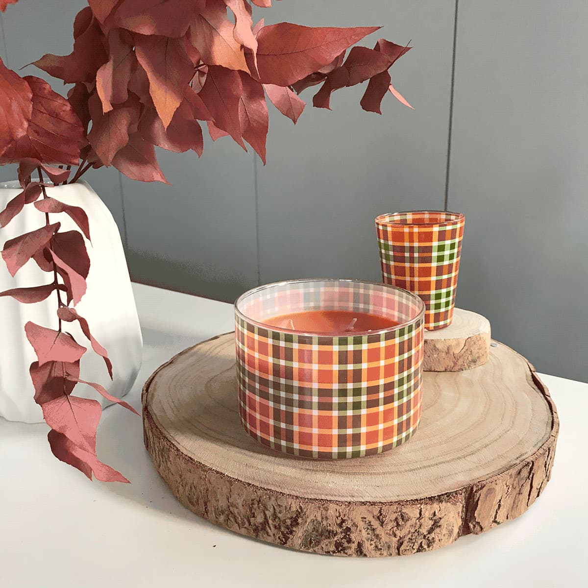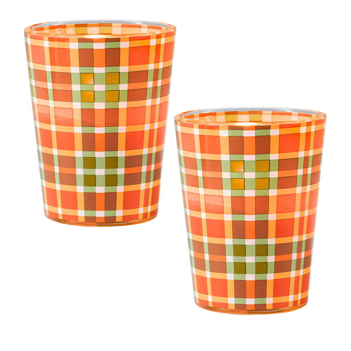 Autumn Tartan Votive Holder Pair