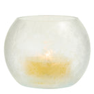 Crafted through a special process that creates a beautiful frosted ice finish, each piece is truly unique – no two are exactly alike. Delicate and refined, it should be handled with care to preserve its shimmering surface. Designed to pair seamlessly with the Crystalline Hurricane, this holder adds a soft, radiant glow to any setting – perfect for creating a serene, seasonal ambiance.