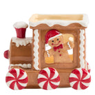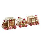 All aboard for holiday whimsy! This delightful trio features a hand-sculpted and hand-painted gingerbread train – complete with engine, rail car, and caboose. Crafted from durable dolomite and decorated to look like frosted cookies, each piece brings a playful glow to your seasonal décor. Designed to hold tealights, it’s a sweet addition to mantels, tabletops, or festive centrepieces.