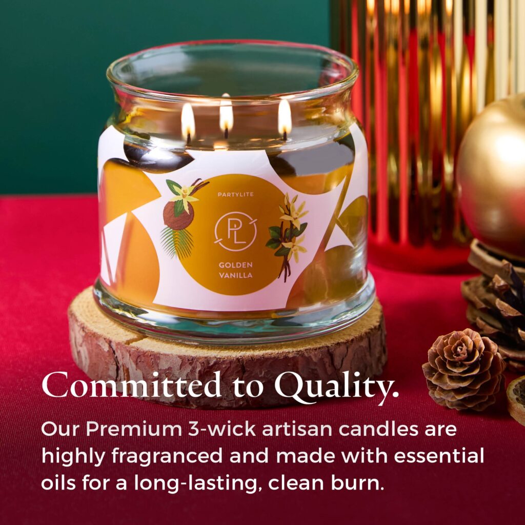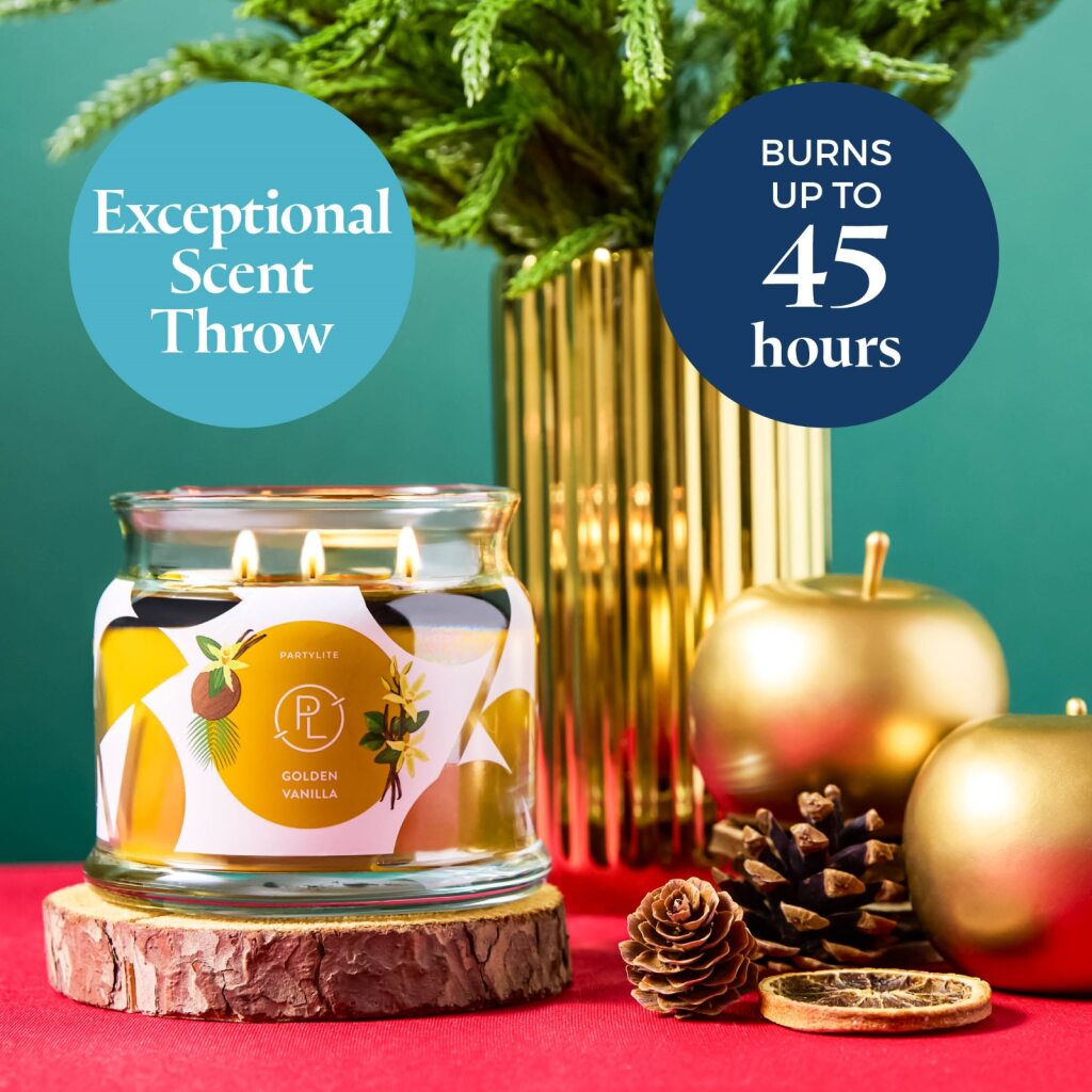 Perfect for creating a sophisticated seasonal atmosphere, Golden Vanilla wraps your space in the golden glow of festive delight.