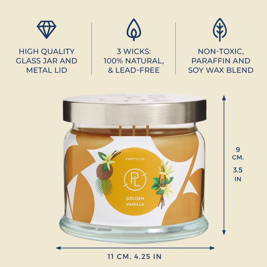 Golden Vanilla 3-Wick Jar Candle No Lid Included
