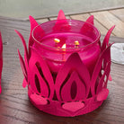 Bring exotic florals into your home and garden style with this lotus flower candle holder. A metal jar candle holder designed to work in perfect harmony with our 3-Wick Jar Candles, it features a cut-out design in hot pink.<br><br><div style="font-size: 70%; line-height: 1em;">Fragrances and candles sold separately.</div>