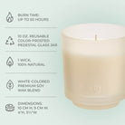 Introducing our refillable jar candle, featuring white wax in a beautiful colour-frosted pedestal glass jar. Enjoy the refreshing Iced Snowberries fragrance, a delightful blend of fresh peach, golden apple, crisp cranberry, and cool cassis that fills your space with a vibrant, fruity aroma. The stylish glass jar is designed for sustainability and can be easily refilled with our natural wax refills, allowing you to continue enjoying your favourite fragrance. A perfect balance of elegance, fragrance, and eco-friendly functionality.