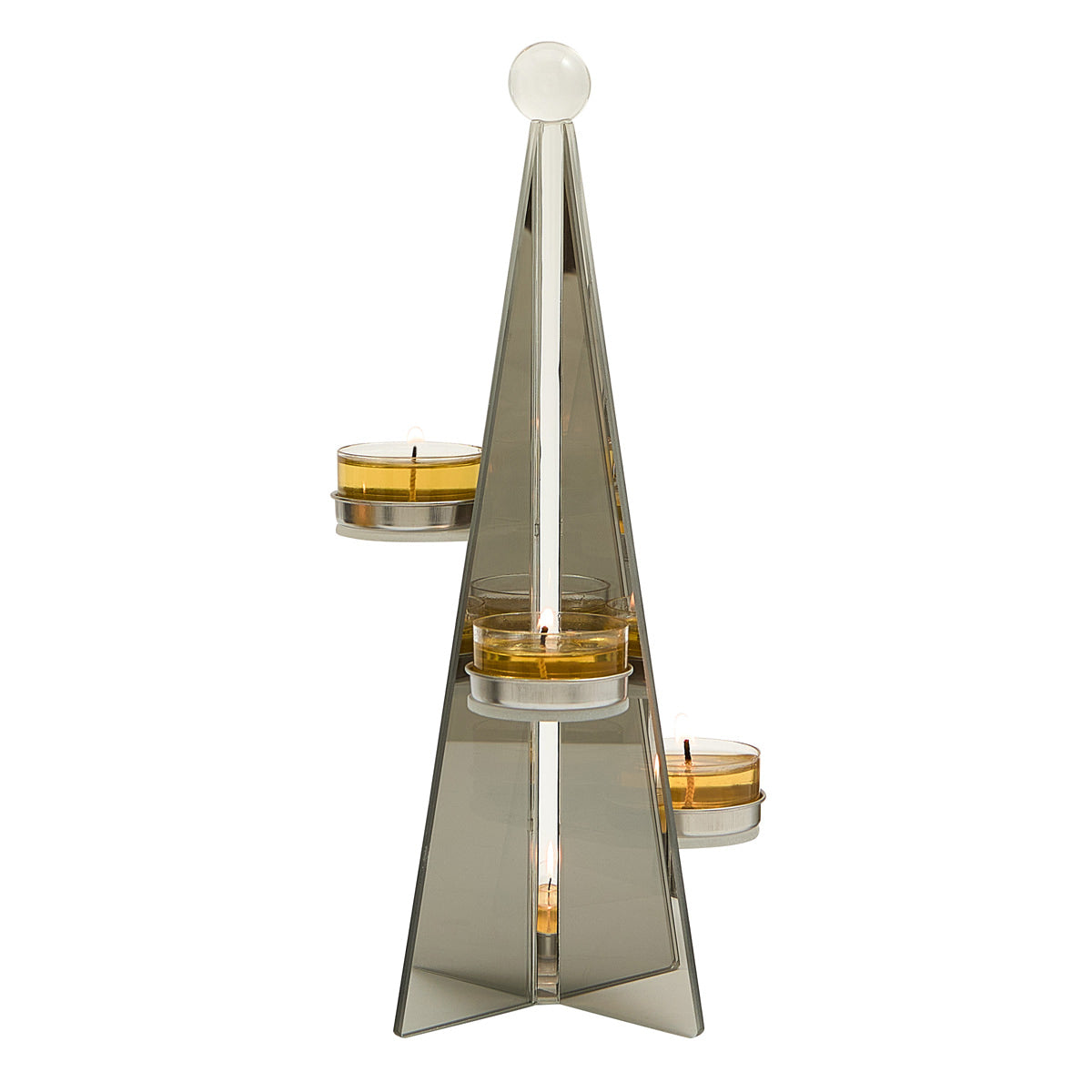 Elevate your candlelight display with this stunning mirrored tealight holder. Designed with translucent panels, it reflects the warm glow of four tealights from every angle and at four staggered heights – creating a layered, luminous effect. Style it solo or pair it with the Small and Large Reflective Trees to craft a radiant, dimensional tablescape.