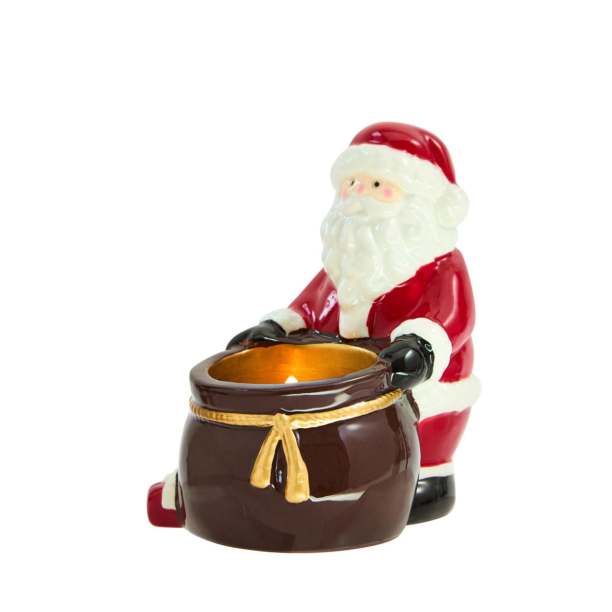 Celebrate the season with this charming, traditional Santa figure. Hand-painted with classic details, Santa carries an open gift sack designed to hold a tealight – casting a warm, cosy glow that brings holiday cheer to any space.
