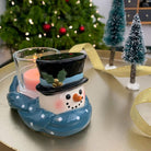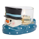 Add this smiling snowman tealight holder to your festive home décor for a playful holiday style. Sporting a classic tophat and scarf, the ceramic holder includes a clear glass cup for tealights and votives.