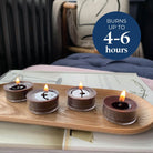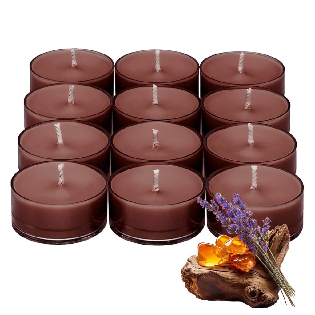 Light one of our Tamboti Woods tealights and experience the beautiful fragrant combination of amber and smoked patchouli with herbaceous lavender and green moss.