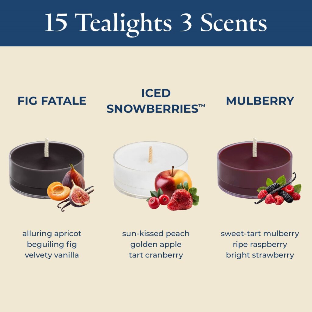 You have it inside you! Take home your fragrance personality box. Fruity and irresistible blends make for a mouthwatering combination of favourites in unique combinations from citrus to berries and more. 4 tealights each of Iced Snowberries™, Mulberry and Fig Fatale in giftable packaging.